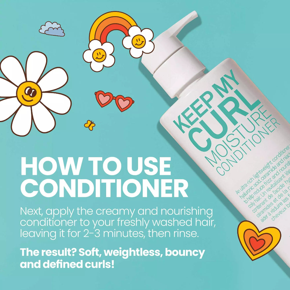 Utvecklat med avancerad hudvårdsteknologi och berikat med hyaluronsyra, ceramider och niacinamid för intensiv vård och styrka. För bästa resultat, kombinera med Keep My Curl Moisture Shampoo – den perfekta moderna 2-stegsrutinen för frissfria, välmående lockar!