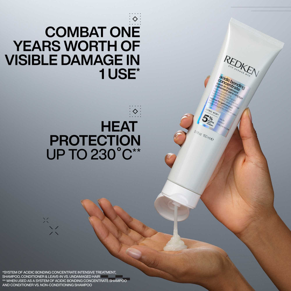 Med dess 5 % Conditioning Care Complex och alfahydroxysyra, citronsyra, stärker Acidic Bonding Concentrate treatment svaga bindningar och förbättrar hårets motståndskraft. Denna pH-balanserande leave-in treatment är speciellt framtaget med ett lågt pH-värde, för att motverka de negativa effekter från hårfärgning, värmestyling och till och med vatten. Resultatet? Ett hår som ser och känns välmående!